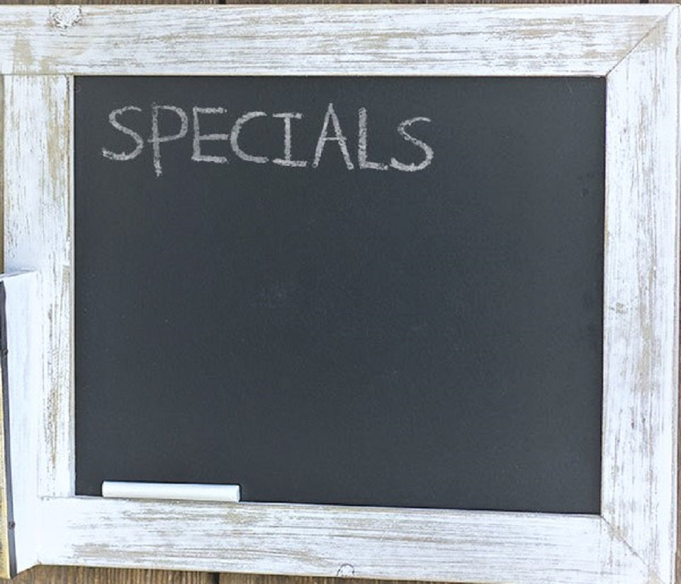 Our whitewashed frame farmhouse chalkboard is a great place to leave a quick message or reminder.  Metal pocket easily corrals your mail, shopping lists, or takeout menus!