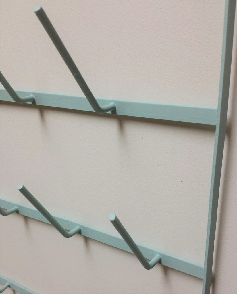 This pale aqua is gorgeous and calming.... a fresh take on vintage 30's-50's, and if you're a vintage kitchen lover, you need this! It works equally as well in the crafts room, foyer, mud room or laundry, and as a scarf/belt/necklace holder in your closet, you'll smile every time you see it!