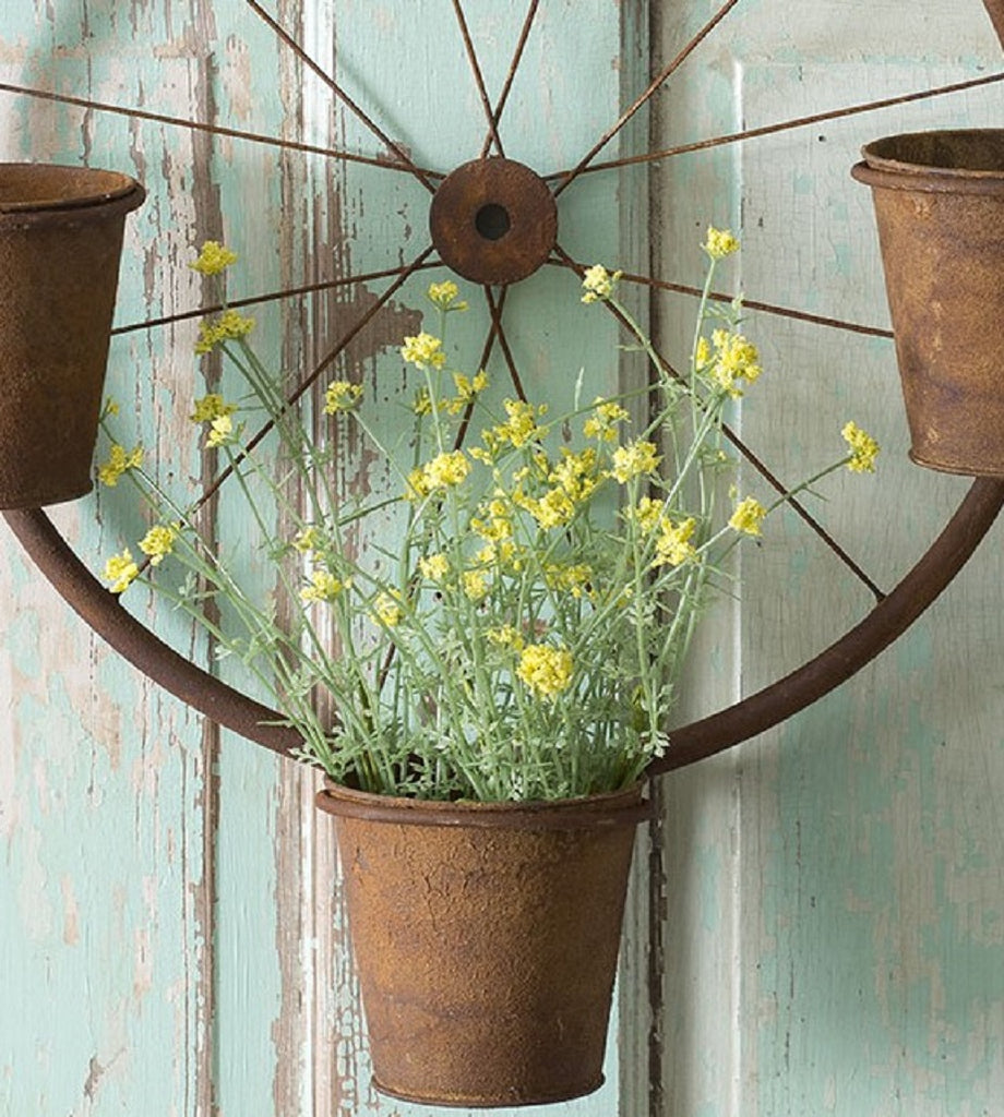 Bicycle Wheel Wall Planter, Door Wreath with 4" Plant Pots