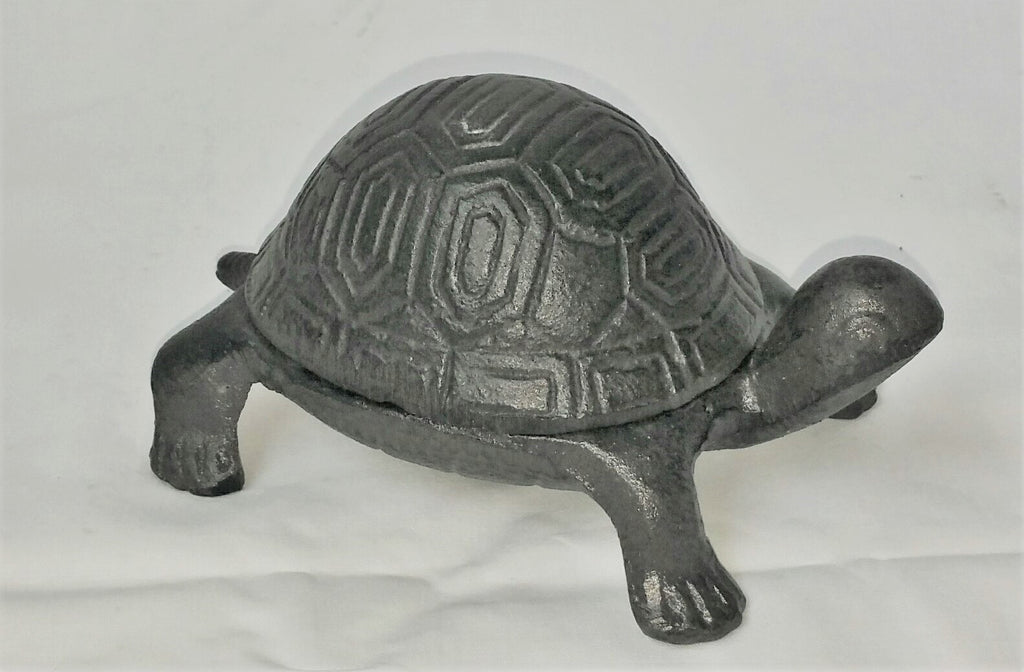Adorable little turtle is full of nicely cast details! His shell lifts away to stash anything from a potting shed key in a window box or doorstep to securing your rings by the sink! He's a hefty little fellow, cute as can be and ready to work!