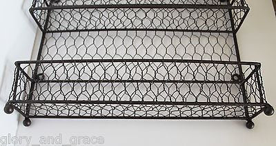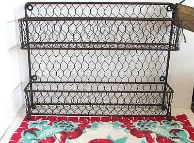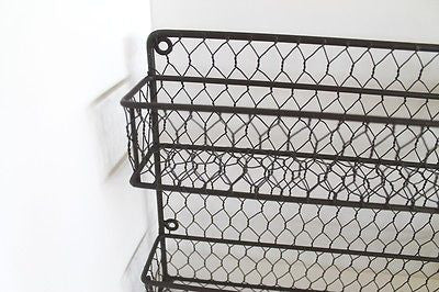 Rustic iron frame and a small patterned chicken wire surround in a rustic rubbed bronze finish makes for a "rustic modern" touch. A kitchen necessity, this utilitarian storage rack fits perfectly with any French chic, Tuscan, European or Industrial style!