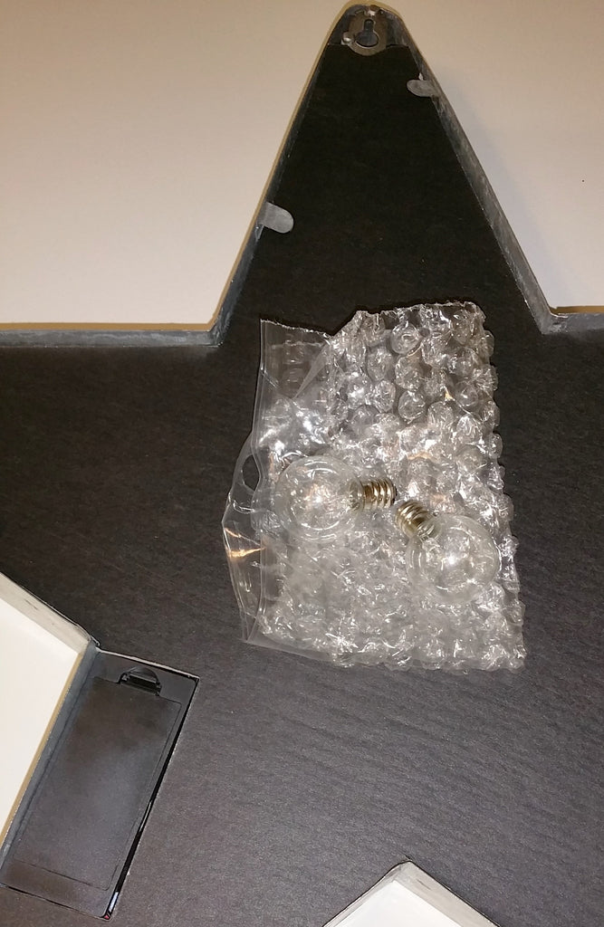 Our farmhouse style 5-point star galvanized light features 10 LED bulbs. Measuring 18½"W x 2¾"D x 17½"T, it makes a perfect accent on mantle, shelf, or mount on any wall with attached keyhole mounting bracket. Includes LED light bulbs and an on/off switch. Requires 2 AA batteries, not included. Includes 2 extra bulbs!