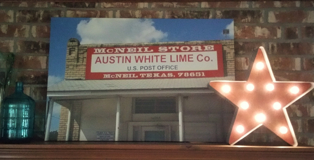 • Lighted backing with galvanized frame forms this rustic farmhouse 5 point star