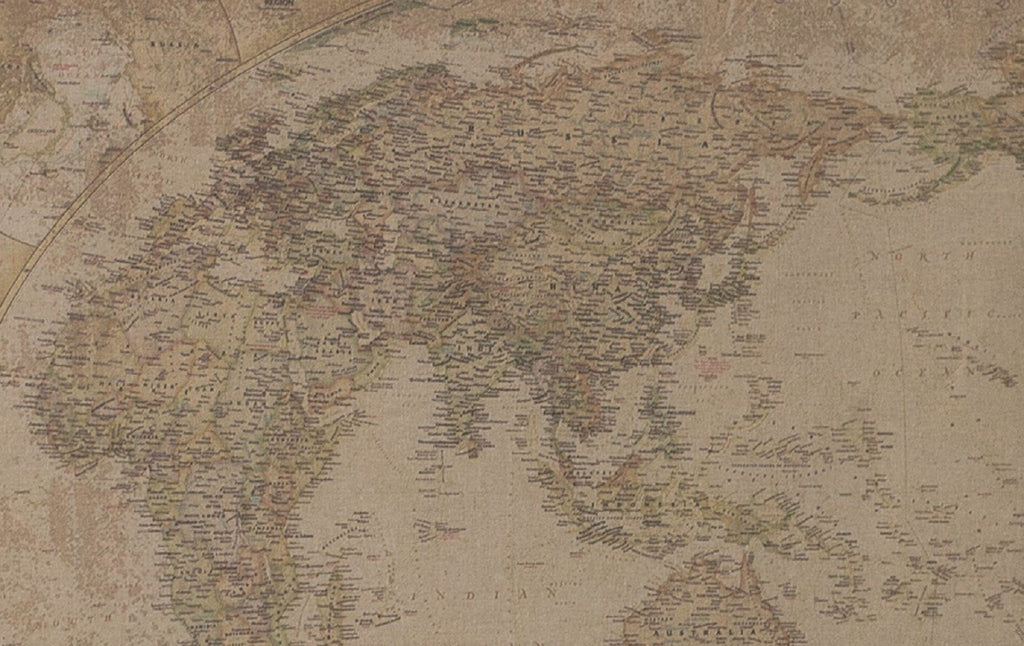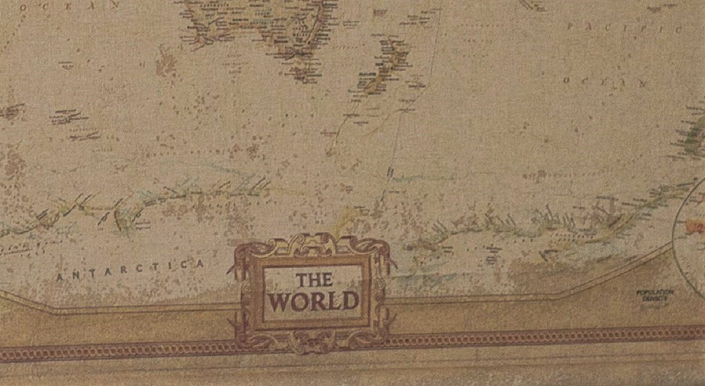 Show off your sophisticated side with this classic cotton canvas fabric map of the world.