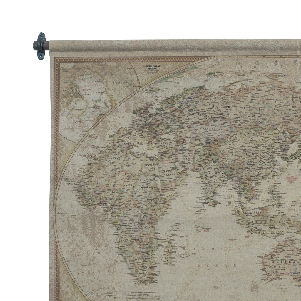Large Cotton Canvas & Iron Bars Map of The World Wall Map