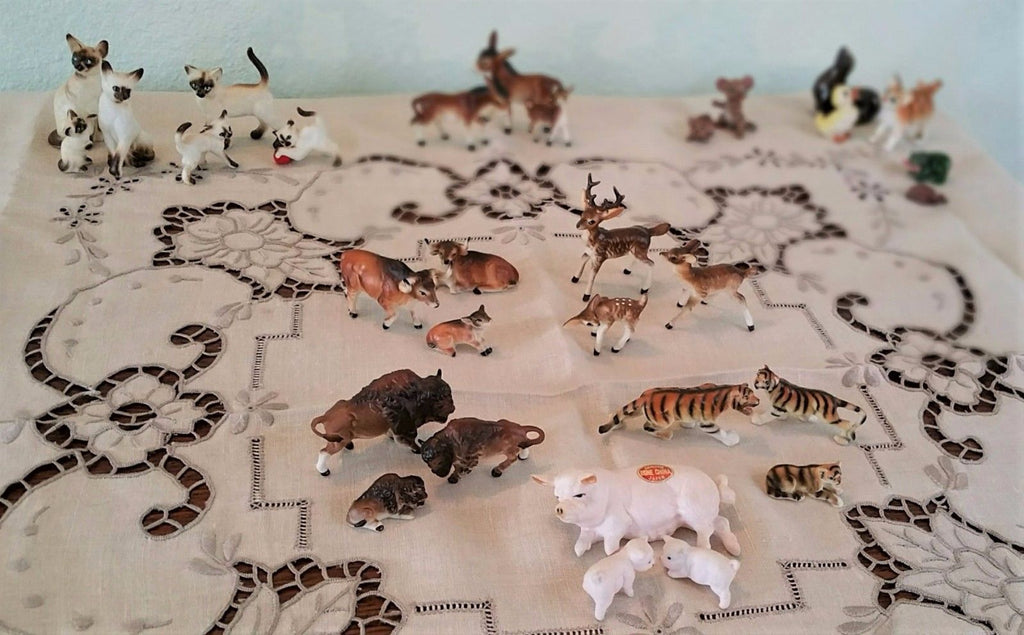 These vintage, and quite hard to find, mid-century pig figurines hail from my aunt's estate. All the miniatures from her estate were kept in a glass encased curio cabinet and are in pristine, mint condition.