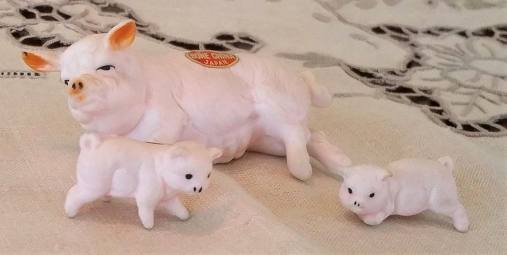 VINTAGE BONE CHINA MINIATURE PIG, PIGLETS, Set of 3 Figurines, MIJ