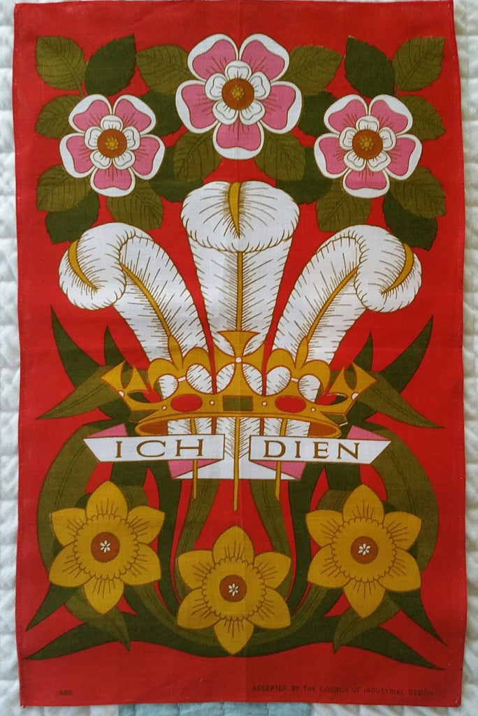 Vintage Prince of Wales Ich Dien Tea Towel