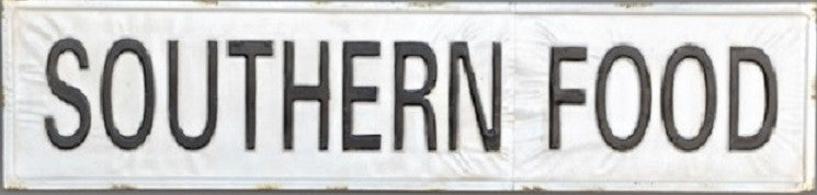 Black on White Embossed SOUTHERN FOOD Metal Sign